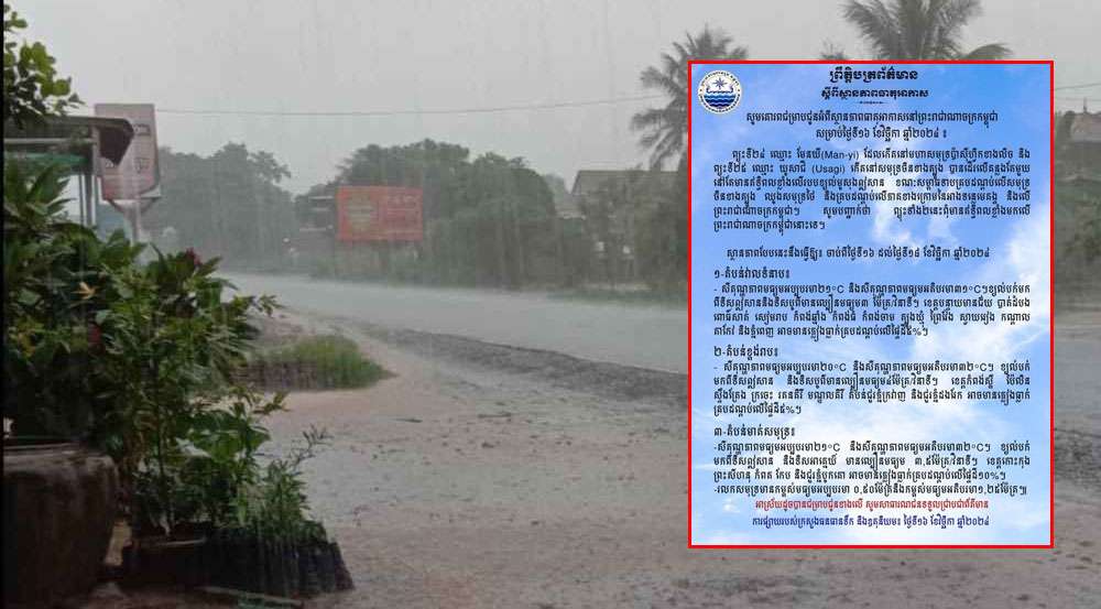 ស្ថានភាពបែបនេះចាប់ពីថ្ងៃទី១៦ ដល់ថ្ងៃទី១៨ ខែវិច្ឆិកា ឆ្នាំ២០២៤។
