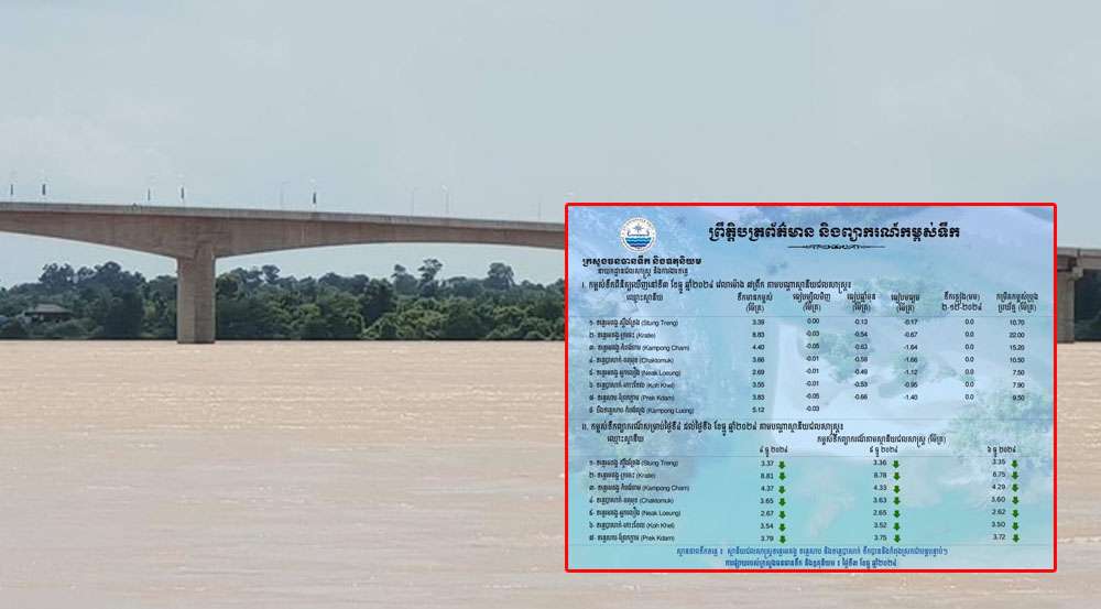 ការថយកំពស់នេះបានធ្វើអោយទឹកនៅទន្លេមេគង្គខេត្តកំពង់ចាម នៅសល់ ៤,៤០ម៉ែត្រ។