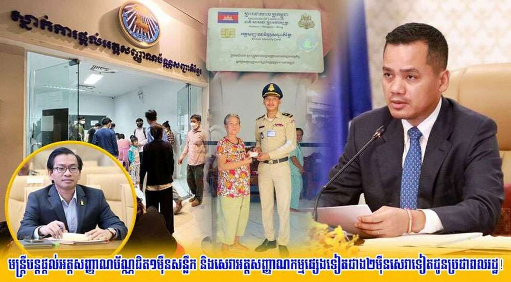 លោកបន្ថែមថា ជាក់ស្ដែងអគ្គនាយដ្ឋានអត្តសញ្ញាណកម្ម បានដាក់ចេញនូវសេវាជាច្រើនតាមប្រព័ន្ធអនឡាញ (online) ជូនប្រជាពលរដ្ឋ ព្រមទាំងបន្តផ្ដល់សេវាទាំងថ្ងៃសៅរ៍ និងថ្ងៃអាទិត្យនៅតាមមូលដ្ឋាន និងនៅតាមផ្សារទំនើប ខណៈឯកឧត្តមអភិសន្តិបណ្ឌិត ស សុខា ឧបនាយករដ្ឋមន្ត្រីរដ្ឋមន្ត្រីក្រសួងមហាផ្ទៃ បានដាក់គោលការណ៍ឱ្យបន្តសិក្សាតាមបណ្តាច្រកចេញចូលតែមួយ ដើម្បីជំរុញការផ្តល់សេវាធ្វើអត្តសញ្ញាណប័ណ្ណ ជូនប្រជាពលរដ្ឋឱ្យបានឆាប់រហ័ស ប្រកបដោយគុណភាព និងប្រសិទ្ធភាព ស្របតាមទស្សនៈ អ្វីៗធ្វើដើម្បីផ្តល់ភាពកក់ក្តៅជូនប្រជាពលរដ្ឋ។